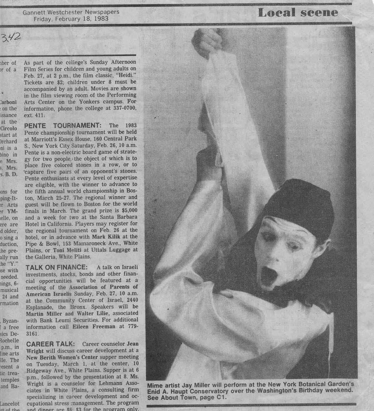 In 1978, theatre arts absorbed my attention and I began to pursue the masters of the art of pantomime theatre, studying with the great