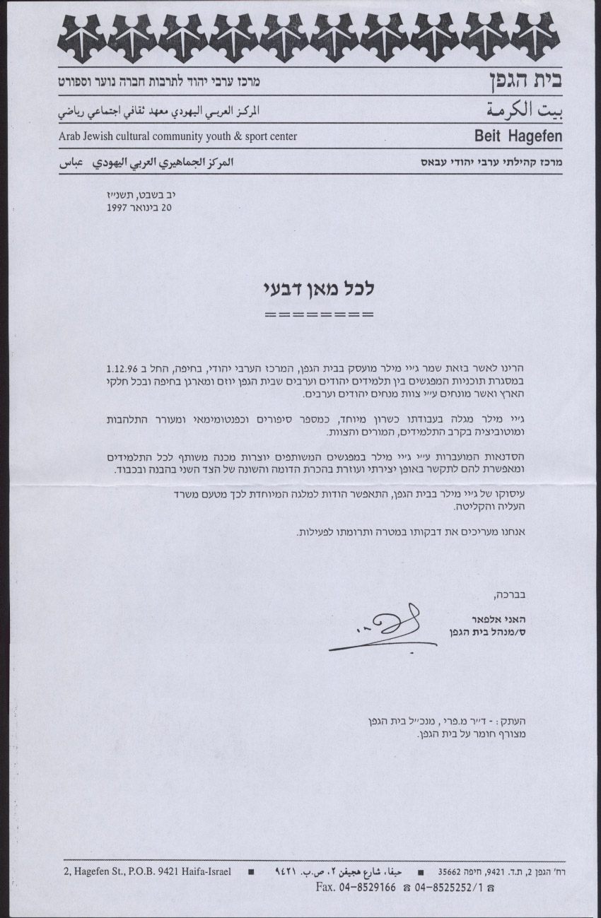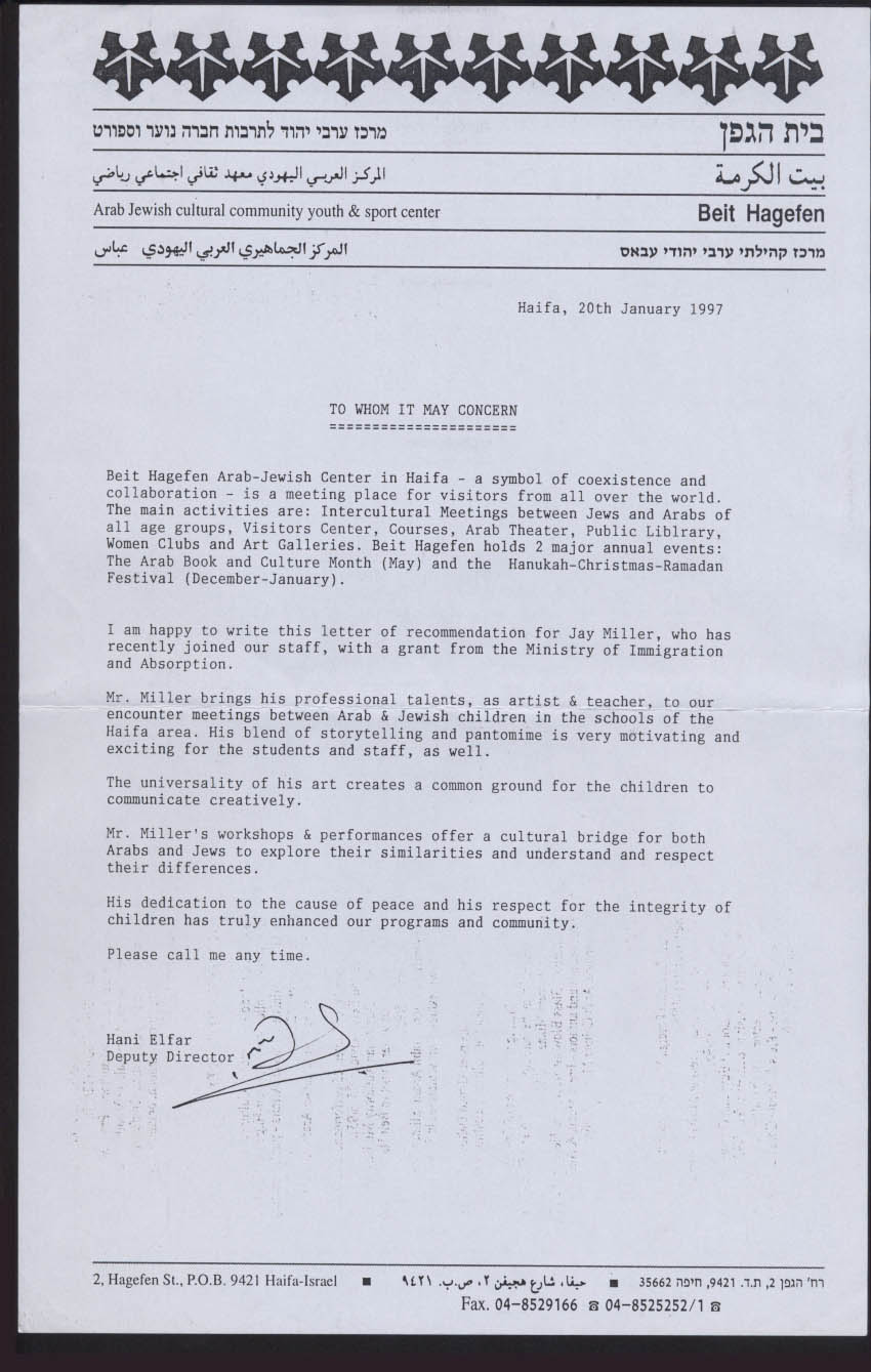 Education’ at Beit Hagefen Arab/Jewish Community Center, program supported by the US and Norwegian Embassies in Israel/Palestine.