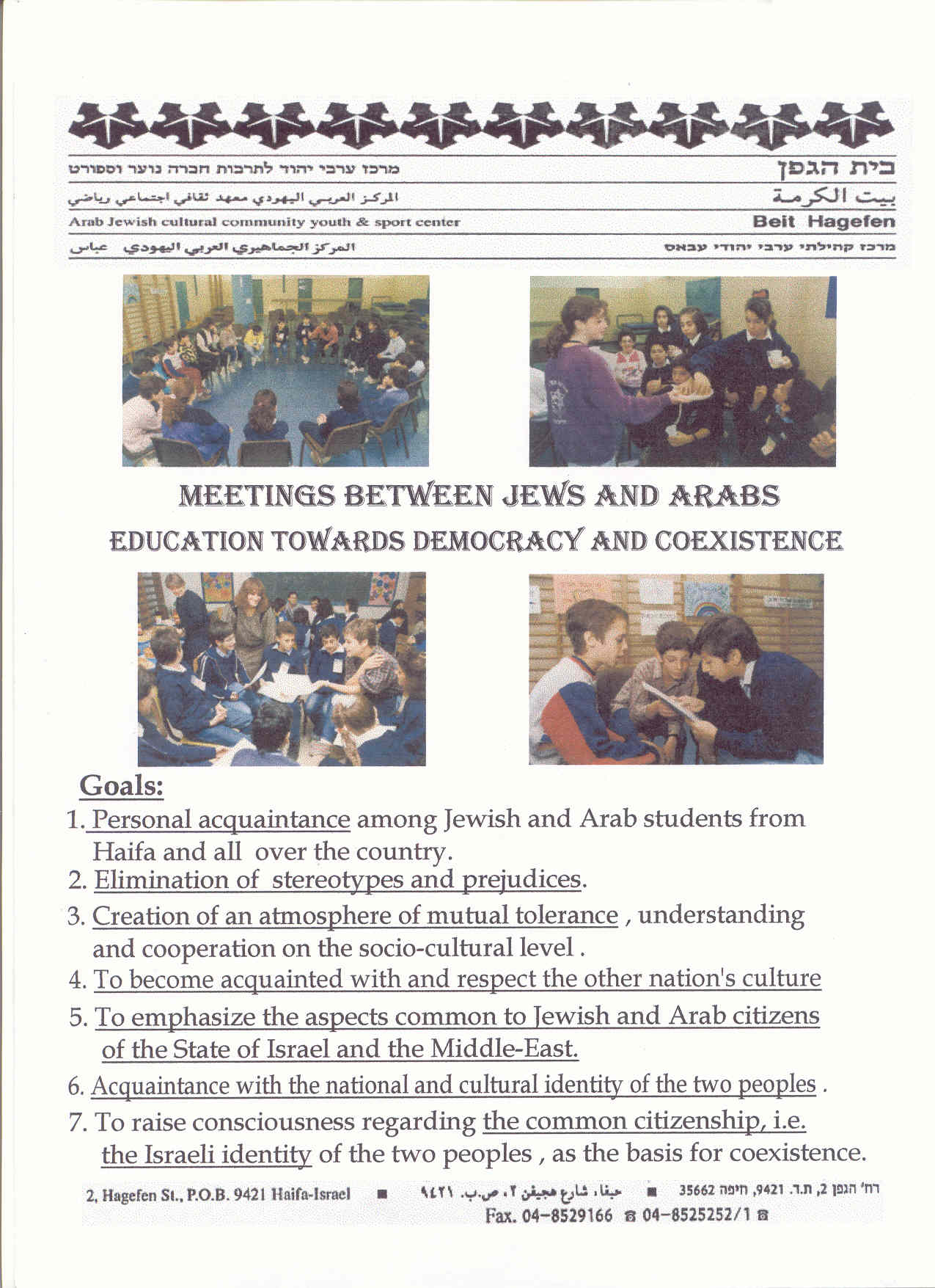 Education’ at Beit Hagefen Arab/Jewish Community Center, program supported by the US and Norwegian Embassies in Israel/Palestine.