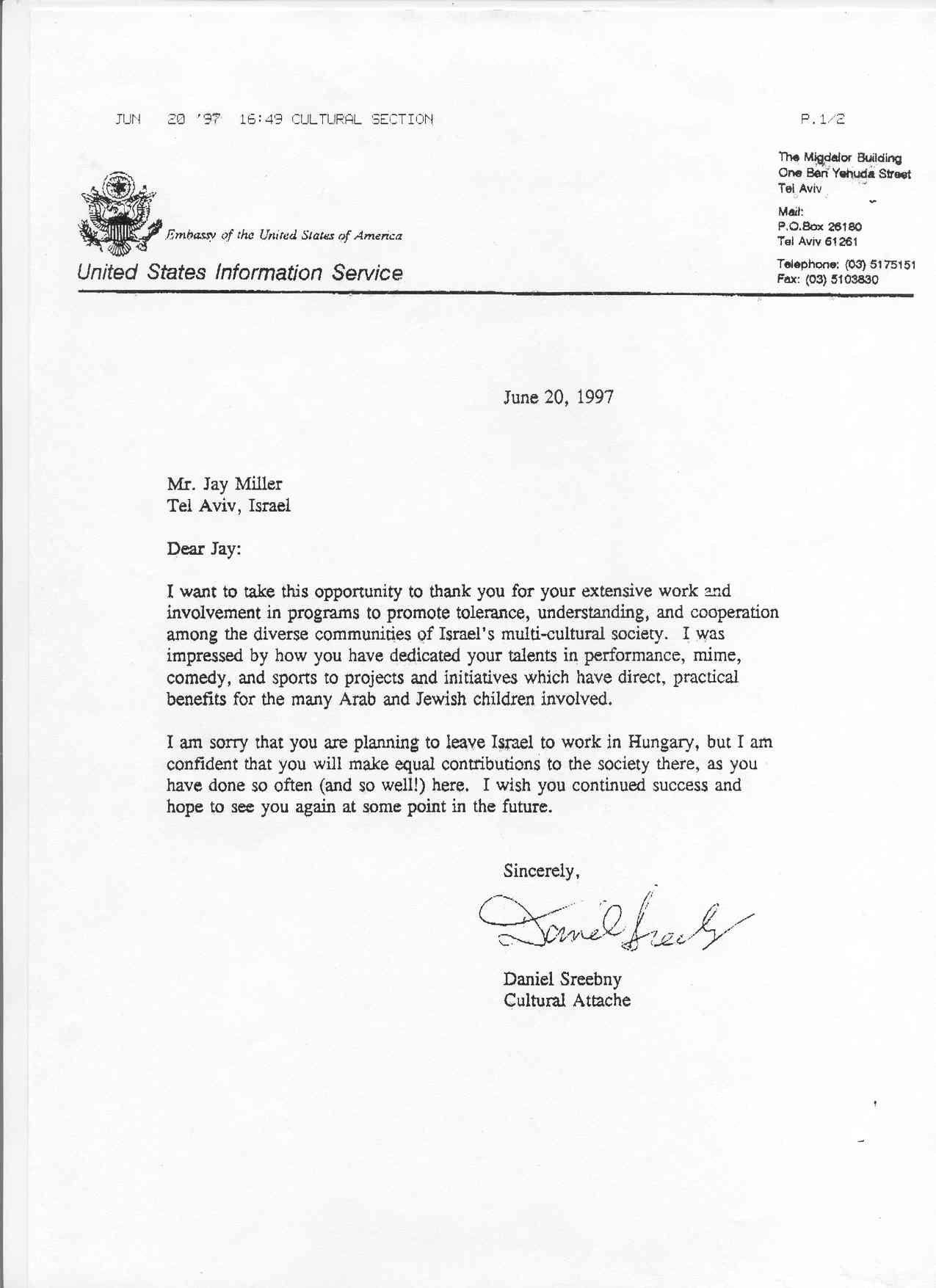 before. During this period I taught pantomime at Beit Zvi Theatre Conservatory in Ramat Gan, coached youth basketball and worked in ‘Peace